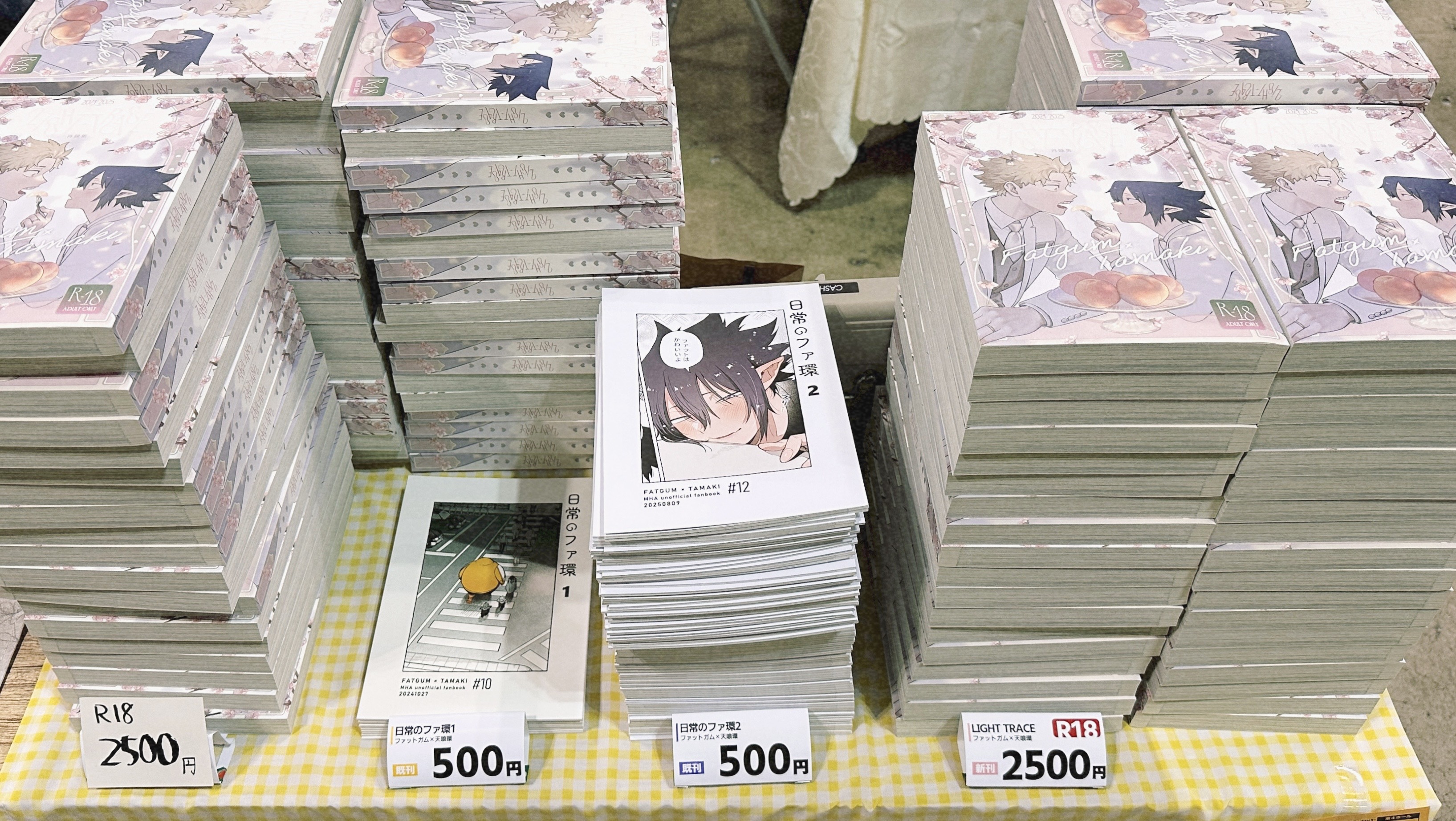 そうだ!宅配搬入の件ですが、荷物は無事に会場へ届いておりました! 気にかけてくださった皆さま、本当にありがとうございました🙇♂️✨ ただ、カレンダーの入ったダンボールを引き取るのをうっかり忘れており…。 開場後に「カレンダーありますか?」と声をかけていただいて初めて、 「カレンダー…?カレンダー!?受け取ってない!!?」と大慌てで引き取りに行きました。 開場直後にお越しいただいた皆さまには、ご迷惑をおかけしてしまい申し訳ありませんでした。 スペースの写真を見返すと――カレンダーがない。 この時気付けていたら…😭 日記 2025/10/20(Mon) 18:11:21 favorite