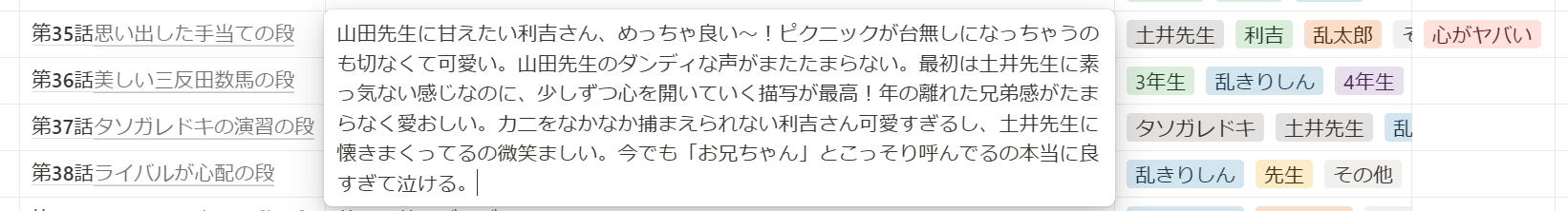 全然一言じゃない「思い出した手当ての段」の頭が悪い感想をみてください。最高とかわいいしか言えない。感想ってどう書けばいいんですか。 メモ 2025/01/24(Fri) 20:26:50 favorite