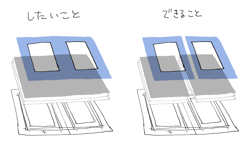 クリスタ原稿設定のはなし 続きを読む見開き原稿を新規作成する際にテンプレートが単ページでしか適用できないのが地味に不便 見開き(2ページ)で1つのテンプレートを共有したいが、そもそも見開き構成は素材登録ができないのでどうしてもしたいなら 見開き原稿を作成→手動でコマ作成→事前に素材登録しておいたレイヤー構成を手動で適用 もしくは ベースとなる見開きデータを作成しておいて都度複製 それかオートアクション…いやめんどい😭⚡ 実装を待つのみ… なにかいい方法知ってる方いたら教えてほしいです😭 畳む メモ 2024/08/24(Sat) 09:23:31 favorite