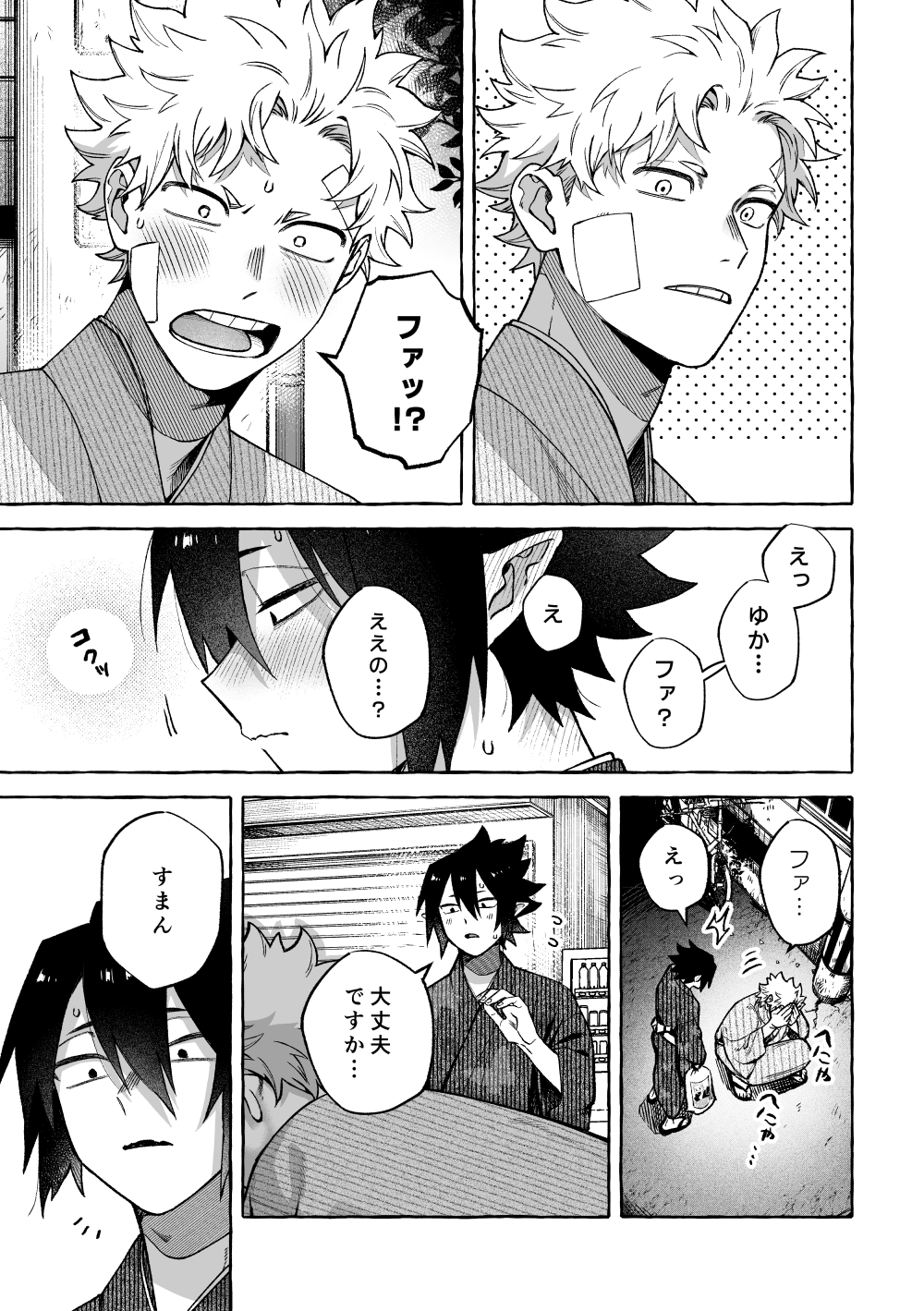 ファのサイドキックになって数年経ったころに環はそろそろ独立せえへんの?と聞かれ、(独立…?考えてなかったな)(そろそろした方がいいのか?ミリオはとっくにしてるし…)(なんで突然独立の話に?)(もしかしてサイドキックを減らす予定なのか…?)(ということは俺はクビ…?)などとぐるぐる考えた末苦しそうに「俺のこと、もう必要ないですか…」なんて飛躍しすぎたこと言い出すからどうしたどうしたとヨシヨシタイムがはじまるファ環… これでも出会った頃よりだいぶメンタル強くなってる方…萌えです… メモ 2024/08/05(Mon) 02:59:43 favorite