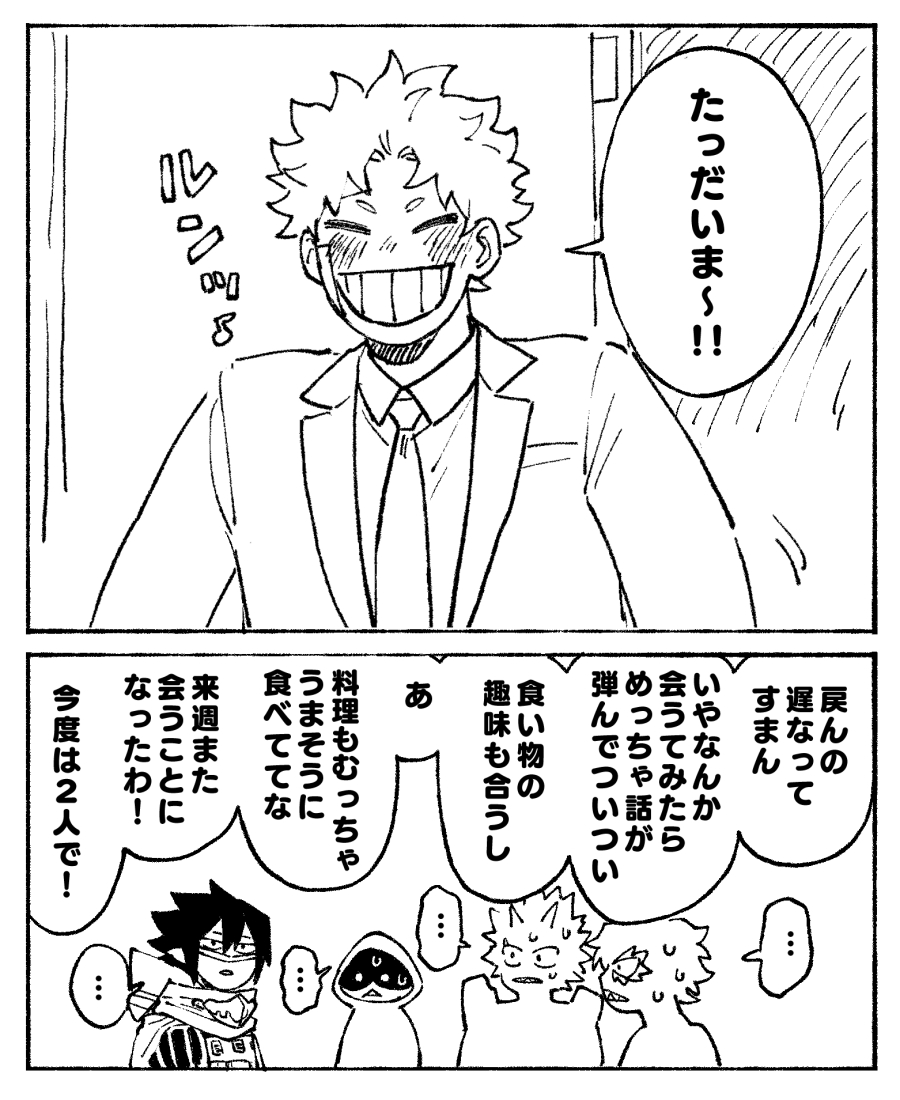 個性のためにおいしくないものを我慢して食べてる環くんとそれを見守るファットガムくん…見たい…