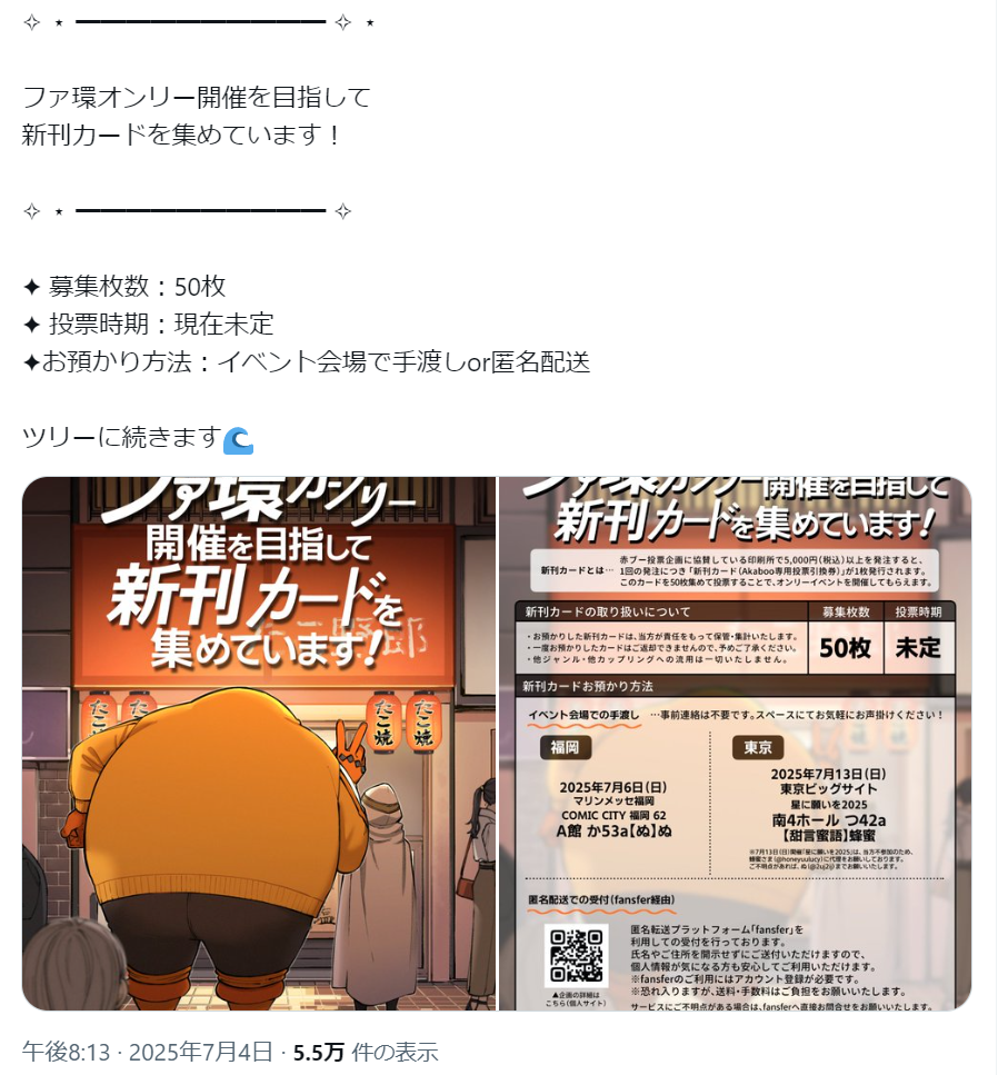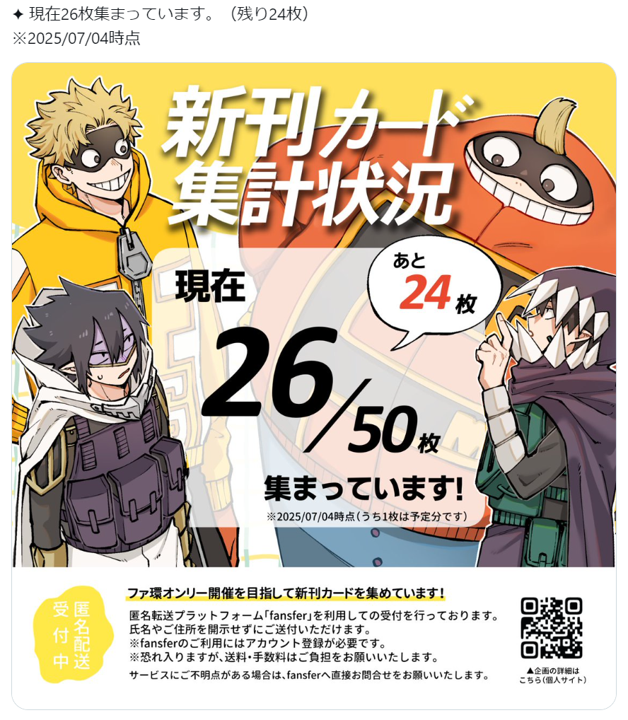 新刊カード募集の呼びかけをXにてポストしました。